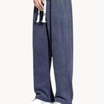 Estas calças de corte reto e relaxado são feitas de uma mistura de veludo cotelê. O design proporciona um ajuste espaçoso na coxa e uma linha reta do joelho à bainha. O corte permite movimento livre e uma silhueta estável.