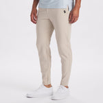 Estas calças elásticas são feitas de uma mistura elástica que apoia o movimento e o conforto. O tecido permite liberdade de movimento ao caminhar, sentar ou ficar em pé. As costuras e a construção são projetadas para manter a silhueta arrumada, permitindo que o tecido retorne à forma após o uso.