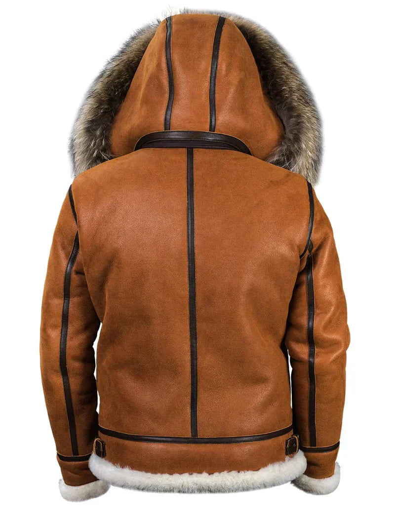 Este casaco utiliza uma mistura de pele de ovelha e pelo de guaxinim. A construção espessa e de pêlo alto ajuda a aprisionar o ar para reduzir a perda de calor. O capuz inclui um acabamento em pelo que adiciona uma barreira contra o vento no rosto. As superfícies internas são suaves ao toque para reduzir o atrito e facilitar a sobreposição de camadas.