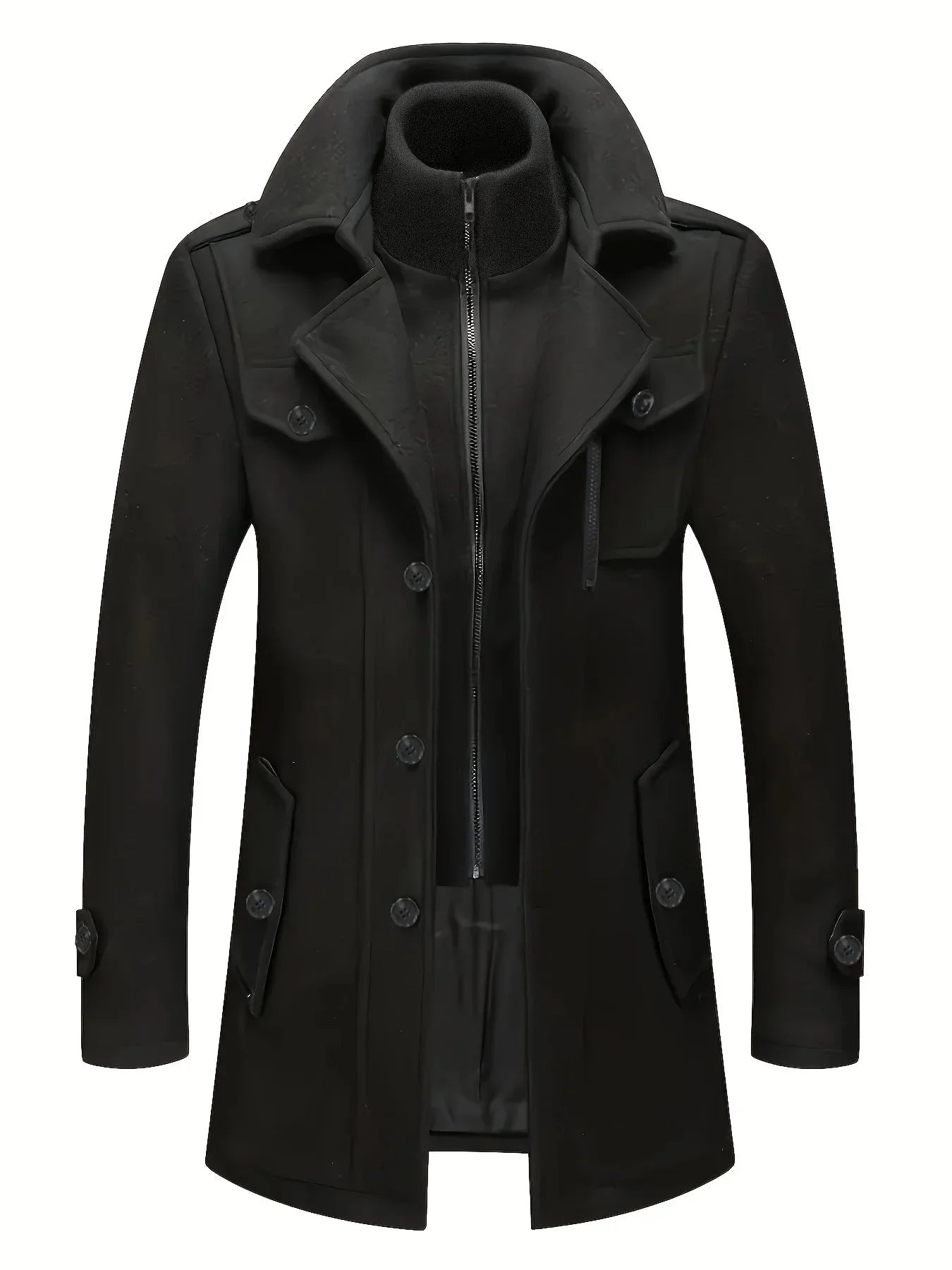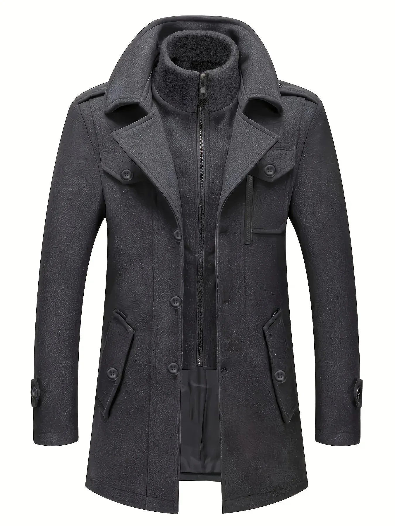 Este casaco é feito de uma mistura de fibras com um acabamento resistente ao vento. Proporciona calor e conforto através de uma sensação suave ao toque. A construção é projetada para ser durável e resistir ao encolhimento e desbotamento ao longo do tempo.