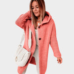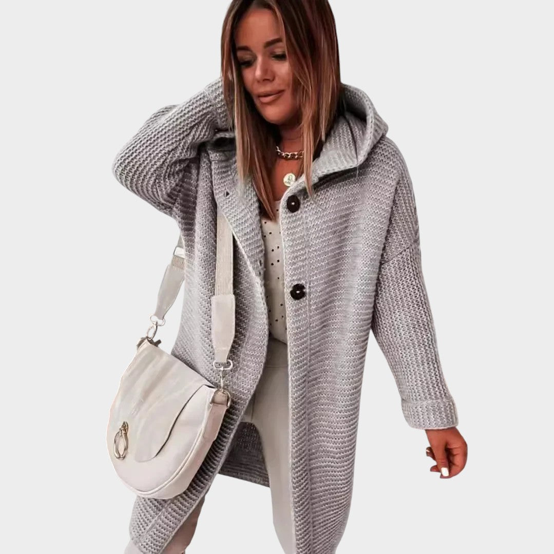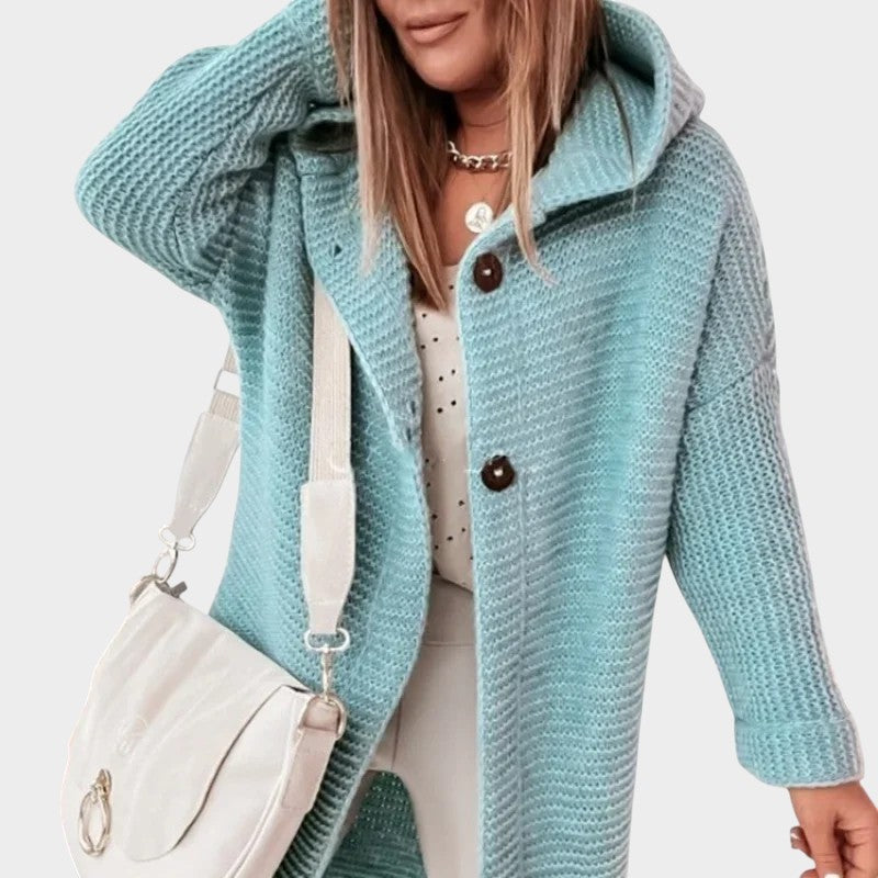 Este casaco de malha apresenta um design descontraído, com capô e botões charmosos, perfeito para quem busca unir conforto e estilo em uma peça só. A textura suave e a modelagem aconchegante fazem dele o aliado ideal para diversas ocasiões, seja para um passeio no dia a dia ou para uma tarde descontraída com amigos.