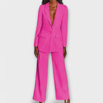 Entra sem esforço no mundo da sofisticação com este elegante fato feminino – perfeito para mulheres modernas que apreciam estilo e versatilidade. Com um blazer feito à medida e calças elegantes, este conjunto combina design moderno com um apelo intemporal.