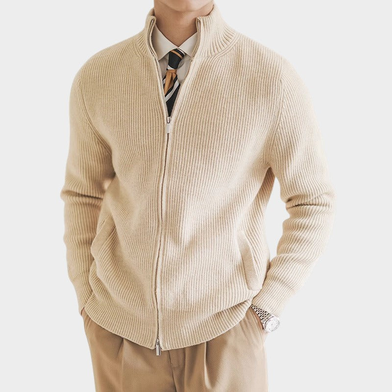 Cardigã de Malha Constantino oferece uma superfície de malha canelada e um ajuste regular que segue a forma do corpo sem apertar. A textura canelada adiciona estrutura enquanto permite que o tecido se mova com quem o usa.