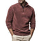 - Punhos e bainha canelados: Ajudam a manter as mangas e o corpo no lugar para uma cobertura consistente.