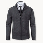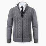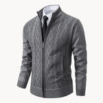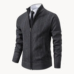 Suéter de Malha com Fecho Frontal e Detalhes em Gola, Punhos e Bainha Canelados