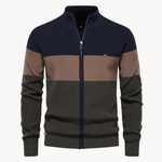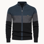 O Cardigã Edy com Zíper é uma peça de malha com um fecho de correr de comprimento total. Tem uma gola refinada e uma risca em contraste que proporciona uma definição visual clara ao longo da frente. O design oferece um ajuste justo, mas relaxado, permitindo fácil movimento.