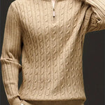 O Suéter com Zíper Roberto é feito de uma mistura de tecidos de toque suave. Possui um zíper funcional que facilita o vestir e despir. O design permite que a peça se adapte a diferentes camadas e estilos.