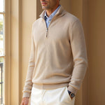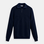 Este sweater de malha com zíper de um quarto apresenta uma gola alta e um fecho de zíper. O corte regular permite espaço para uma camada base, mantendo uma silhueta arrumada. A construção em malha oferece elasticidade flexível e estabilidade estrutural para uso repetido.
