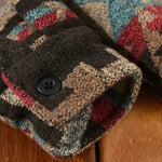 Este camisa casaco apresenta um padrão asteca vintage e um design robusto, inspirado no sudoeste. É feita para proporcionar calor e uma sensação estruturada. A forma exterior funciona como uma camisa com calor adicional. O tecido é descrito como uma mistura de tecidos para oferecer durabilidade e conforto.