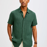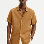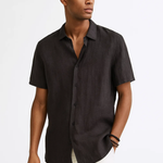 Camisa de Botão com Colarinho Aberto e Manga Curta Arejada