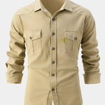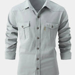 Esta camisa de botão de manga longa é feita de uma mistura de denim que proporciona uma estrutura tecida durável e uma forma estável. A frente com botões permite ao utilizador abrir ou fechar a camisa para ajustar a cobertura. As mangas longas com punhos de botão permitem um simples enrolar das mangas e um ajuste seguro no pulso. Um colarinho clássico ajuda a manter a linha do pescoço arrumada sob camadas exteriores.