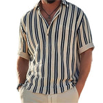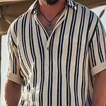 Camisa Listrada de Manga Curta com Colarinho de Lapela e Tecido Respirável
