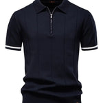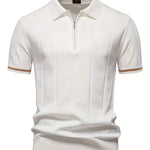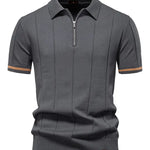 A camisa polo apresenta um ajuste moderno que segue as linhas do corpo enquanto permite movimento. O corte tem uma forma ligeiramente afinada na cintura e uma bainha reta que se situa ao nível dos quadris. As mangas curtas proporcionam cobertura sem restringir os braços.
