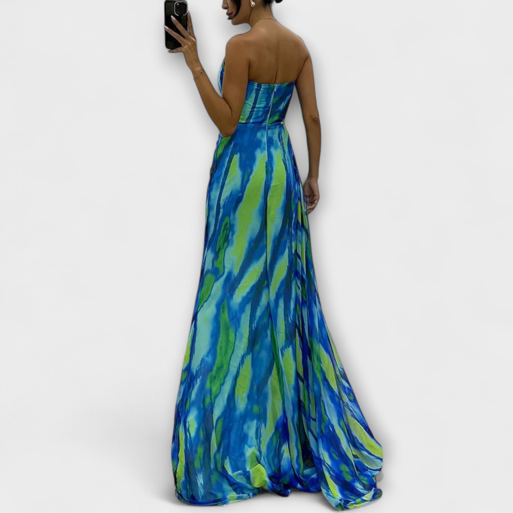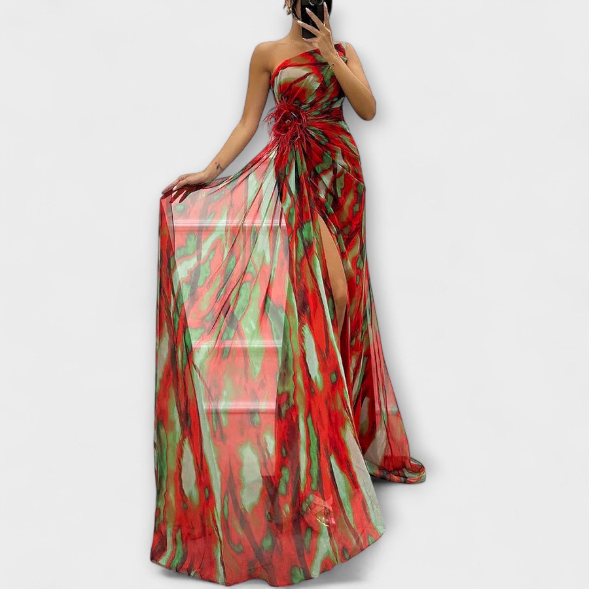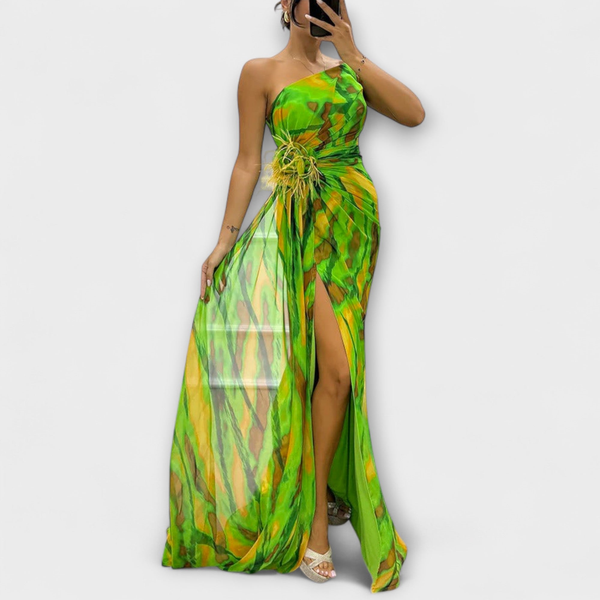 Suba ao palco com o vestido maxi Noemi Vibrante! Este encantador vestido é uma mistura perfeita de estilo clássico e um toque moderno. Com um decote assimétrico e um audacioso fenda lateral, adiciona exatamente a dose certa de drama, enquanto o padrão vibrante garante que você se destaque como um verdadeiro ícone—ideal para festas de verão e soirées à noite.