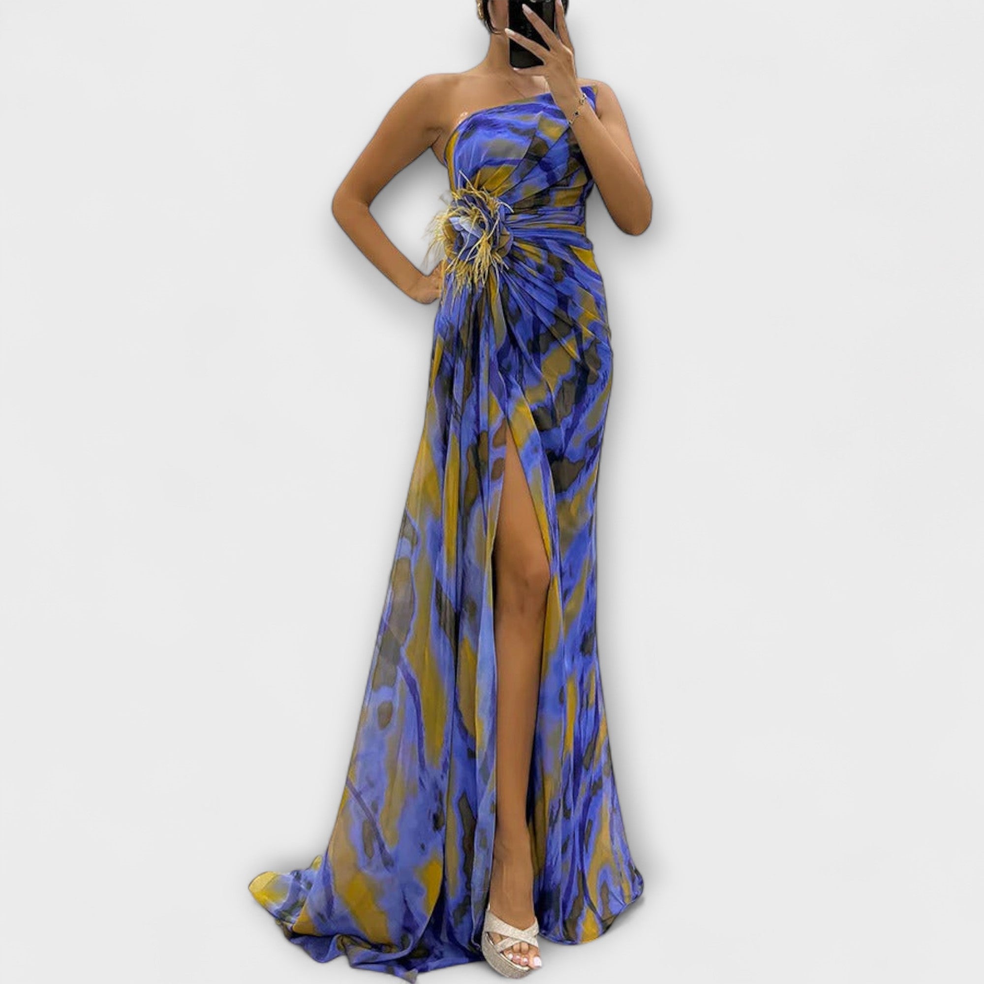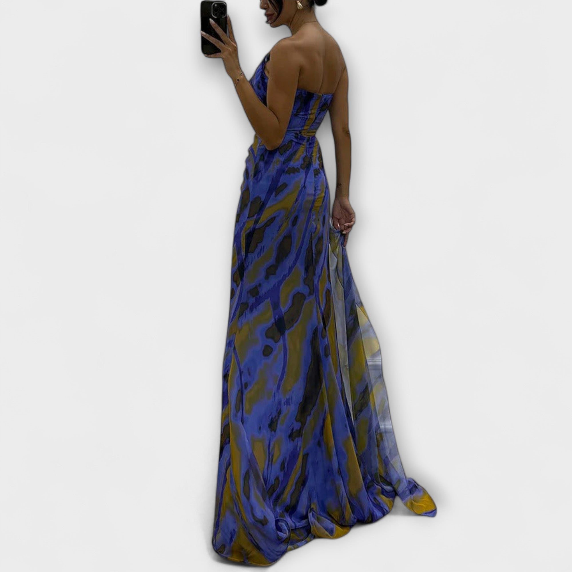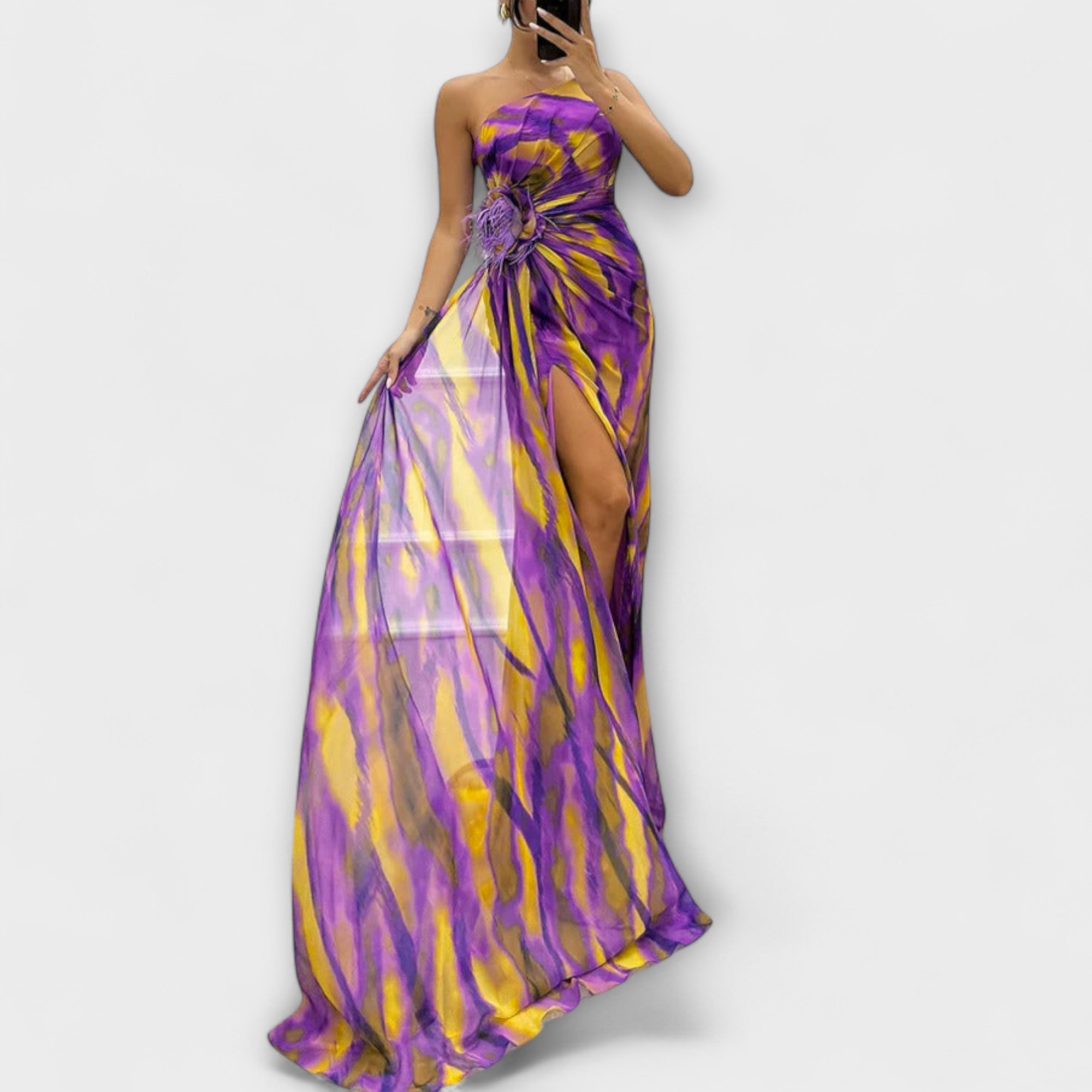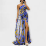 Suba ao palco com o vestido maxi Noemi Vibrante! Este encantador vestido é uma mistura perfeita de estilo clássico e um toque moderno. Com um decote assimétrico e um audacioso fenda lateral, adiciona exatamente a dose certa de drama, enquanto o padrão vibrante garante que você se destaque como um verdadeiro ícone—ideal para festas de verão e soirées à noite.
