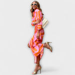Descubra a Clarissa | Vestido Midi às Riscas – uma mistura perfeita de charme descontraído e elegância sem esforço. Quer vá ao brunch, para o escritório ou passear com os seus entes queridos, este vestido foi concebido para que esteja sempre bem apresentada e se sinta incrivelmente confortável.