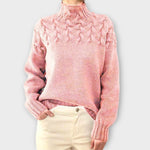Eva - Pullover feminino com detalhe de tricot em cabos