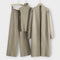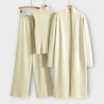 Descubra o estilo sem esforço com o nosso conjunto de três peças – composto por umas elegantes calças, um cardigan e um top sofisticado. Este conjunto une conforto e elegância em perfeita harmonia, ideal para looks versáteis.