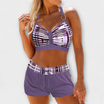 Descubra o Bikini Janelle, um elegante fato de banho riscado com cintura alta. Ideal para os amantes da praia modernos, este bikini combina conforto e elegância para dias inesquecíveis na praia ou na piscina.