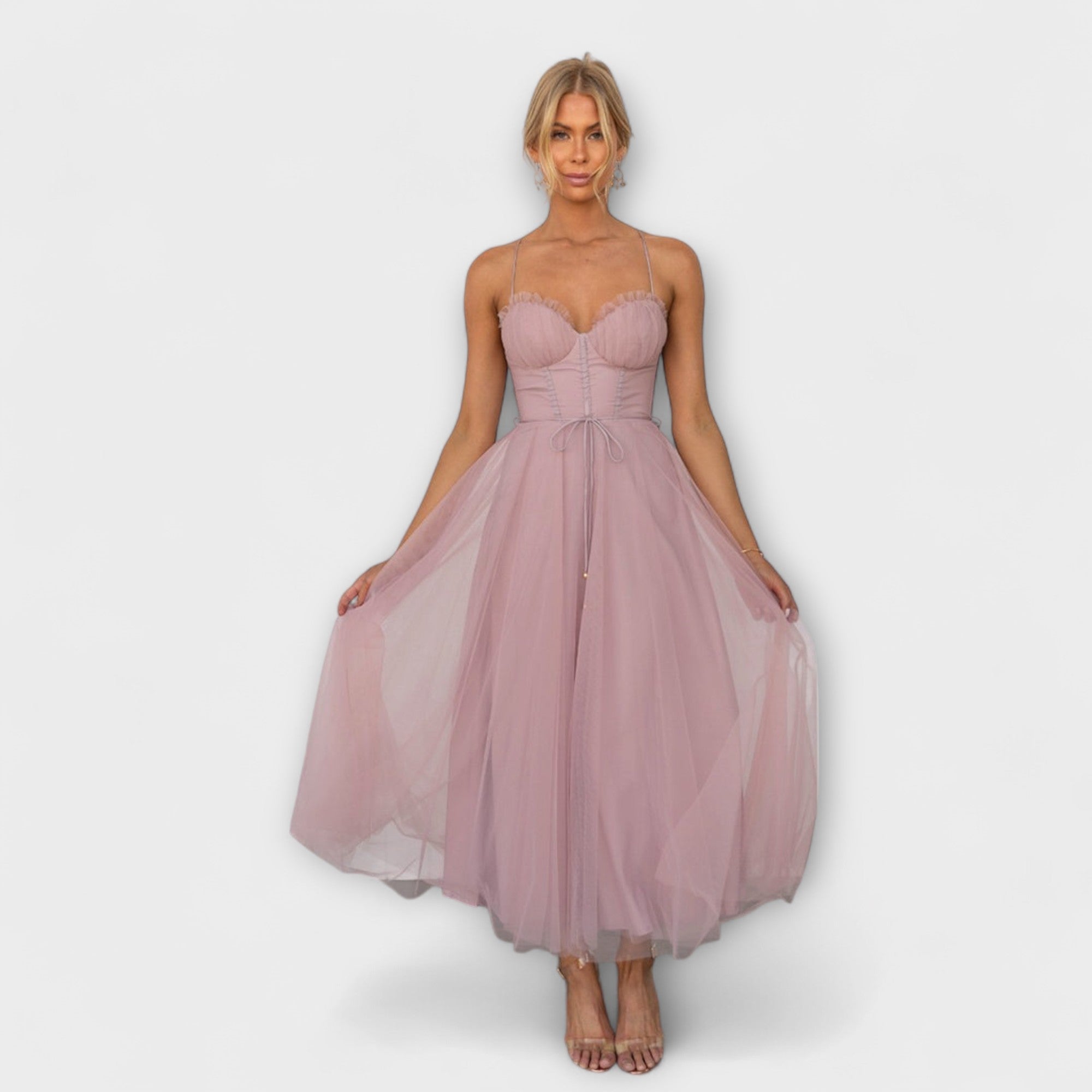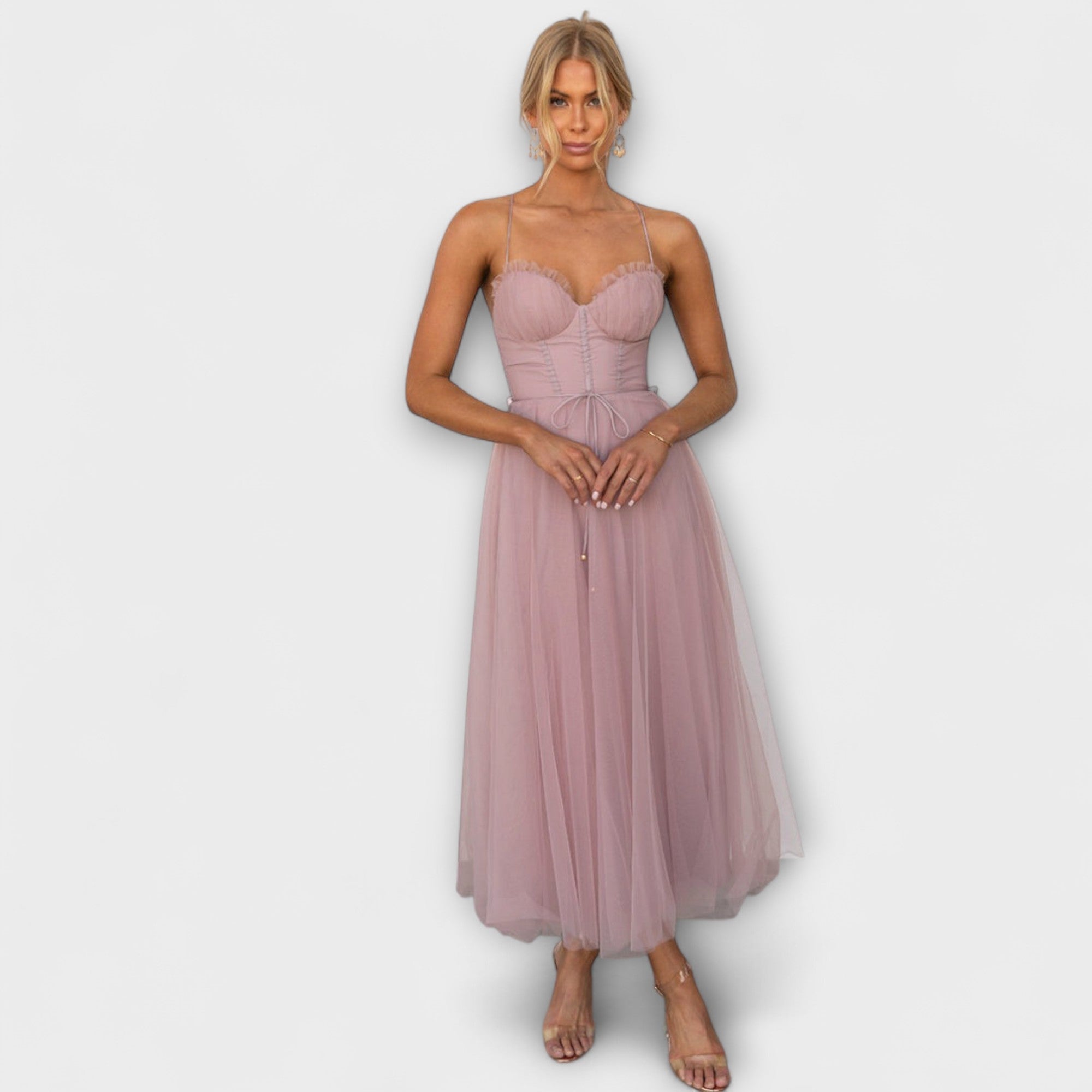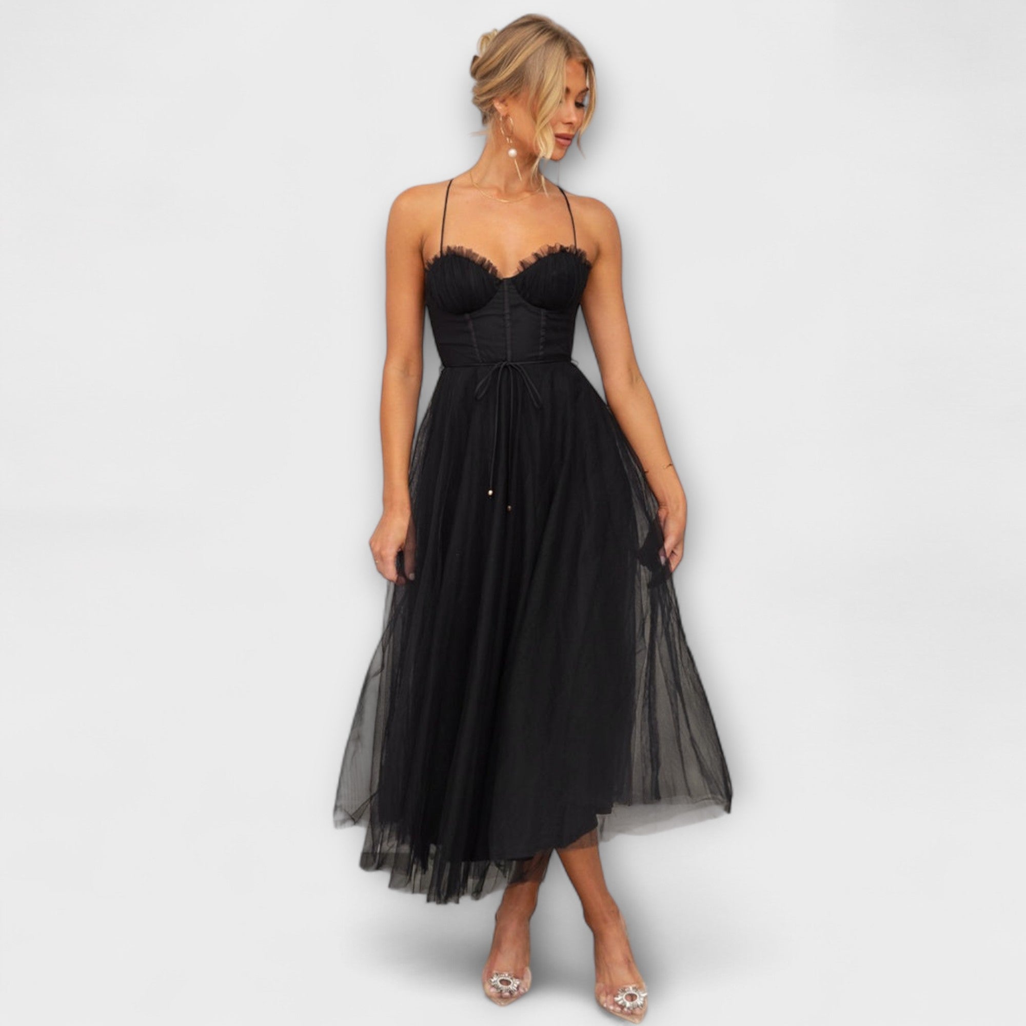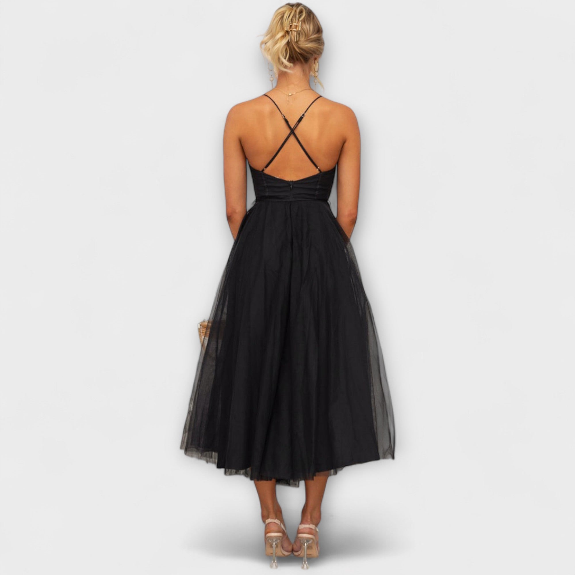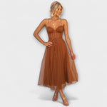 Silhueta Graciosa com Estilo Elegante: Este vestido midi festivo irradia elegância e acentua a figura com um corte que favorece. O design fluido proporciona liberdade de movimento sem esforço – ideal para festas, eventos elegantes ou noites sofisticadas.